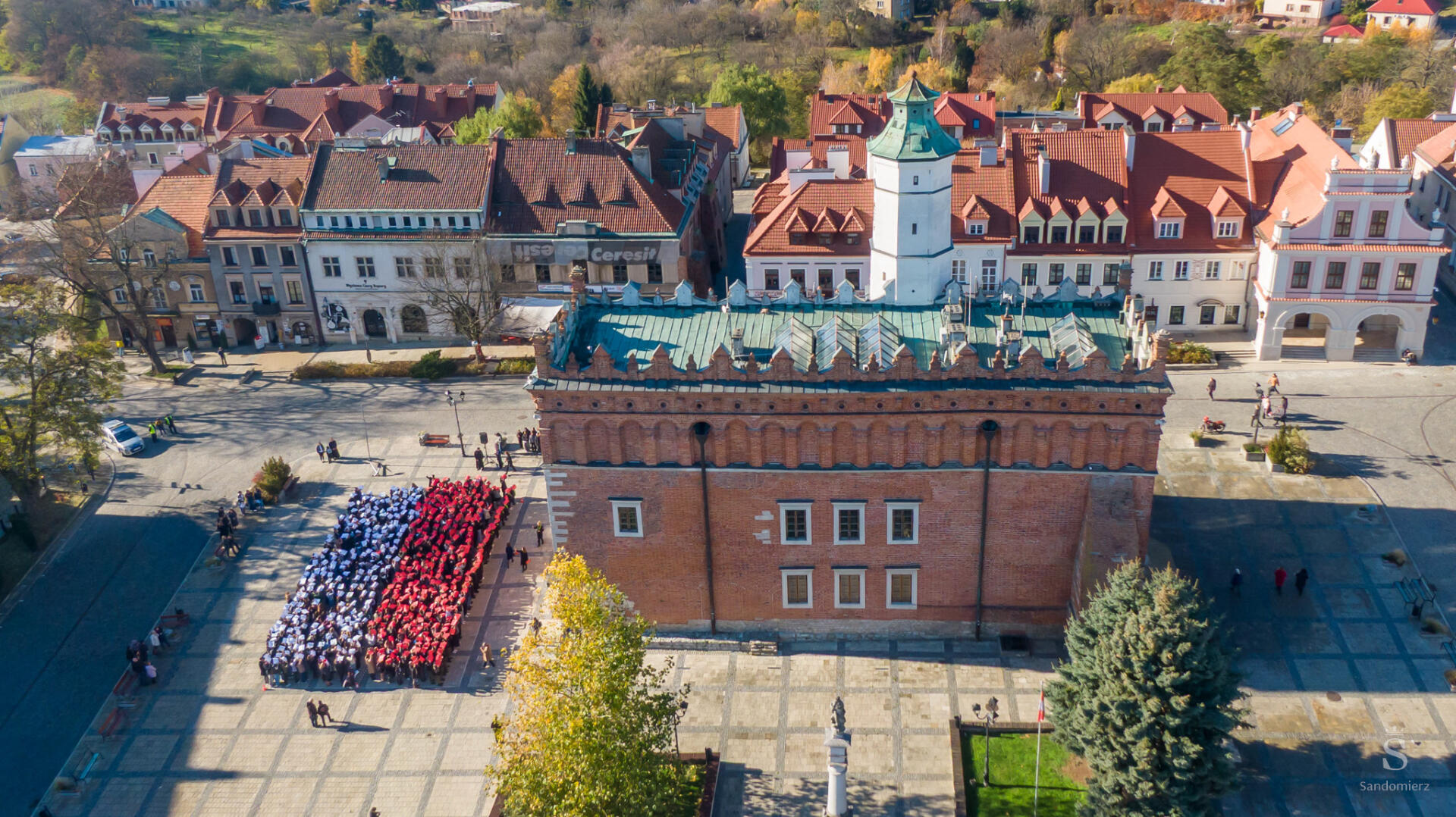 W piątek, 7 listopada 2025 roku, punktualnie w samo południe, Rynek Starego Miasta w Sandomierzu wypełnił się biało-czerwonymi barwami. Po raz kolejny odbyło się wyjątkowe patriotyczne wydarzenie – happening „Żywa Flaga”. Uczestnicy utworzyli wspólnie ogromną flagę Polski, stając się żywym symbolem jedności i narodowej wspólnoty.